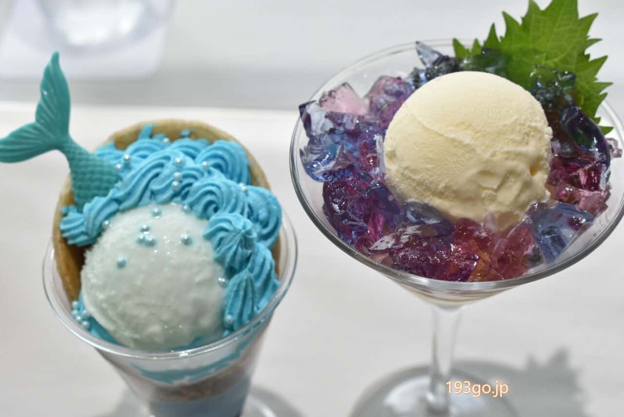 人魚はホワイトチョコで、なめらかなブルークリームにさっぱりした塩アイス、アラザンのカリカリと、シリアルのザクザク食感!