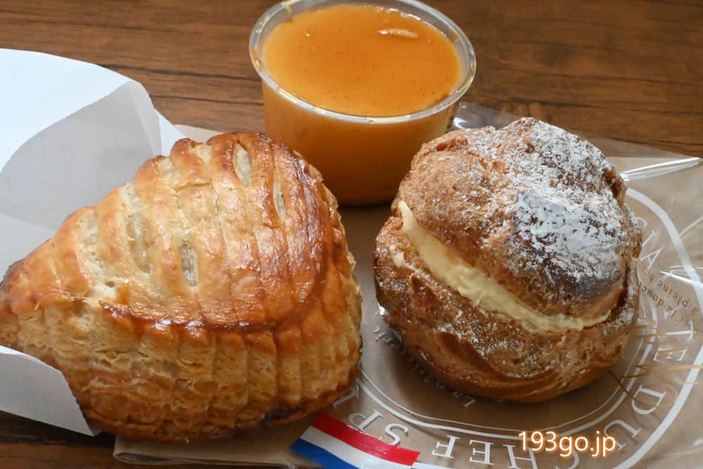 シュークリームは香ばしい生地にクリームぎっしり詰まってる。