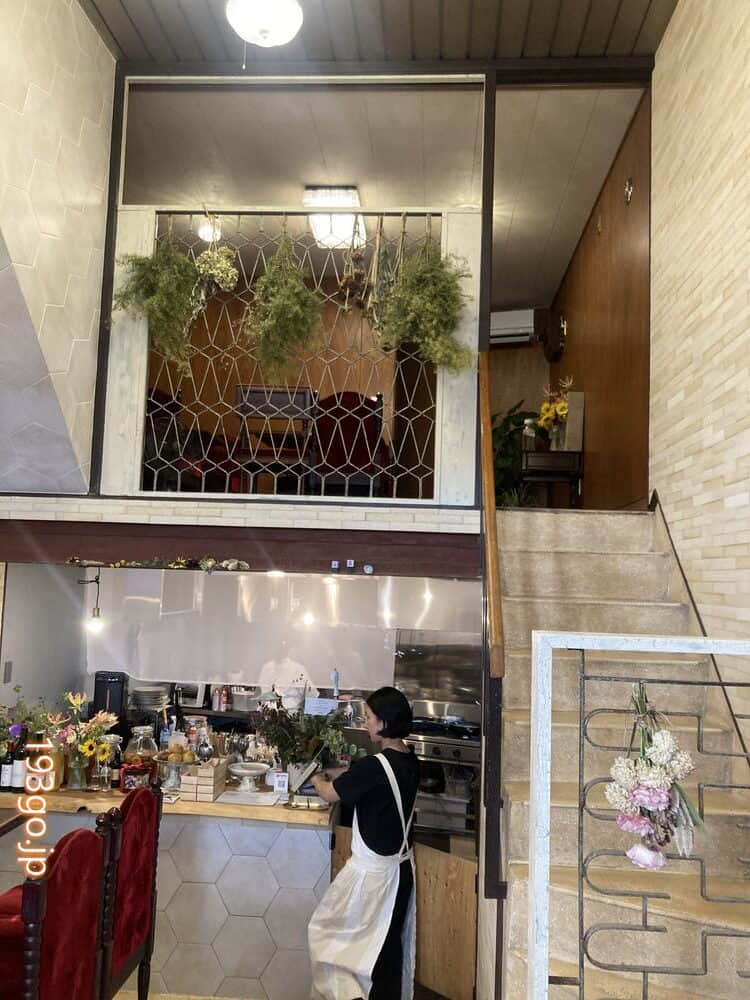 2階は4人がけテーブル2卓の1階よりも小さなロフト的なスペース。