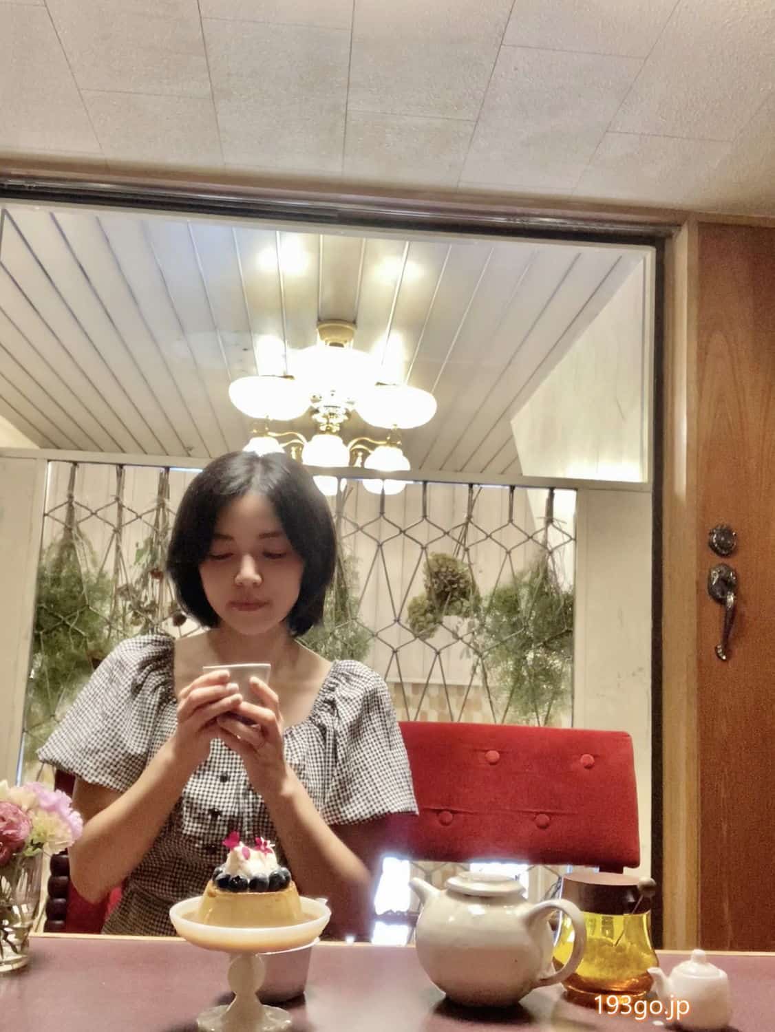 プリンと、和紅茶のホットを。