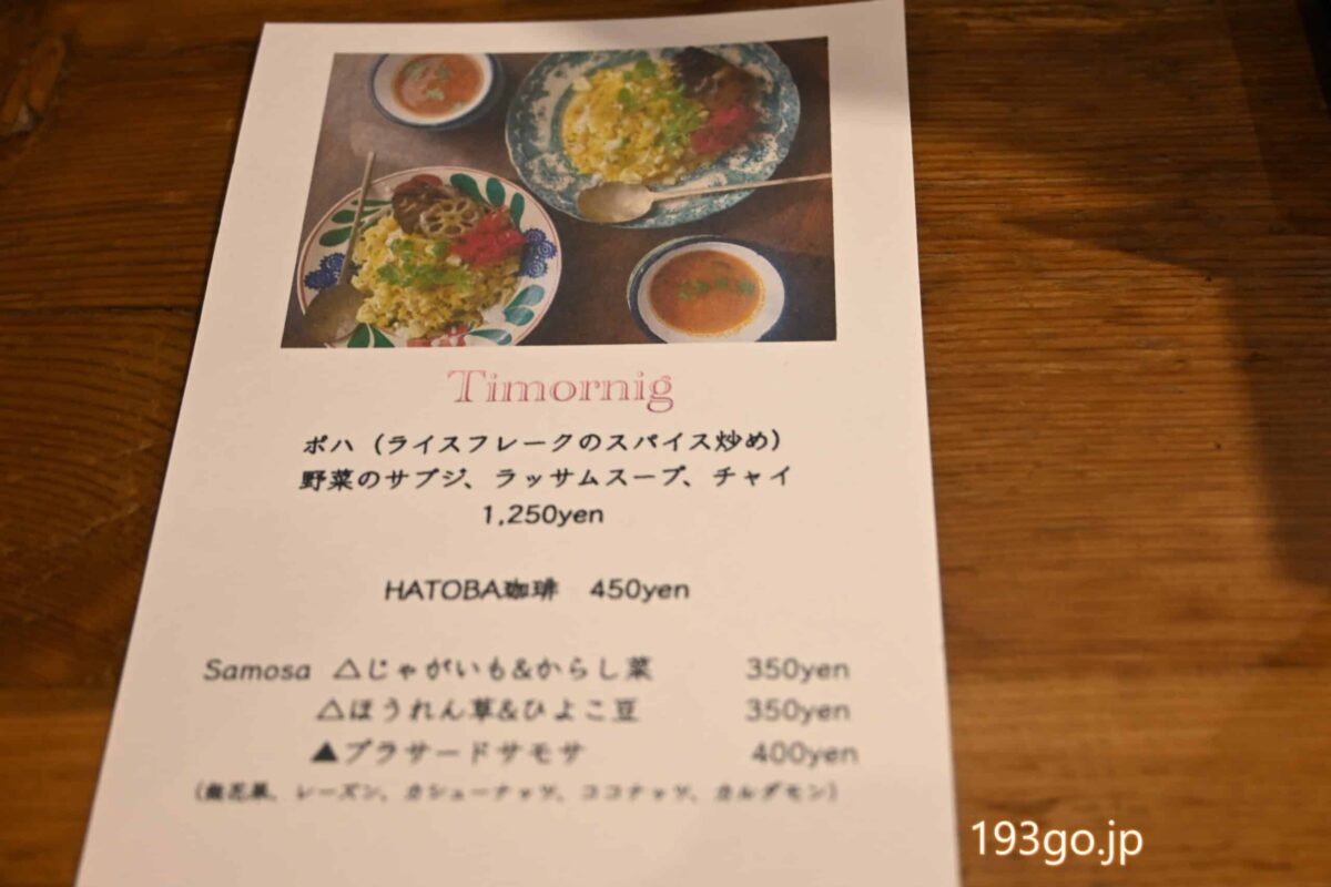 北口から7分「HATOBA(ハトバ)」でインド料理のモーニング「Timorning」