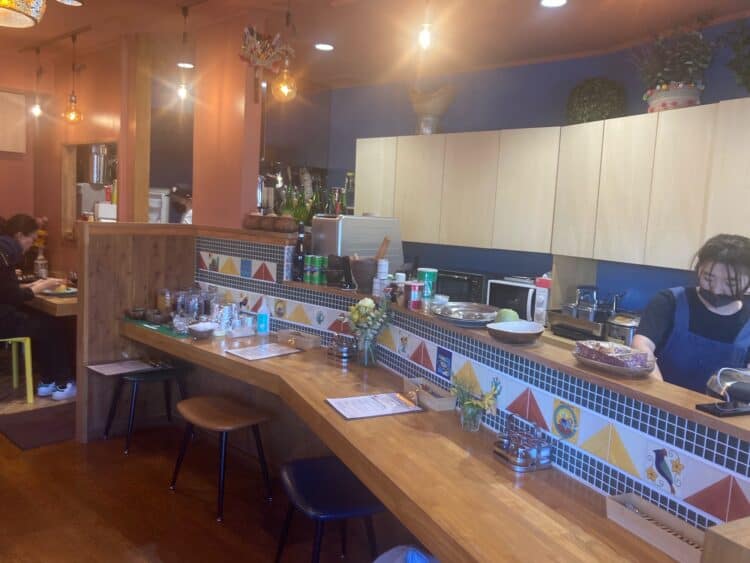 テーブル席もあり、一人だったのでおしゃれなタイルのカウンターで。