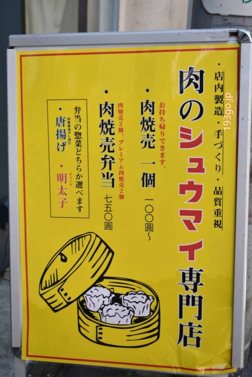 焼売は外看板も立ってて、店内で手作りの自家製で一個からお持ち帰り、焼売弁当もあるよう!