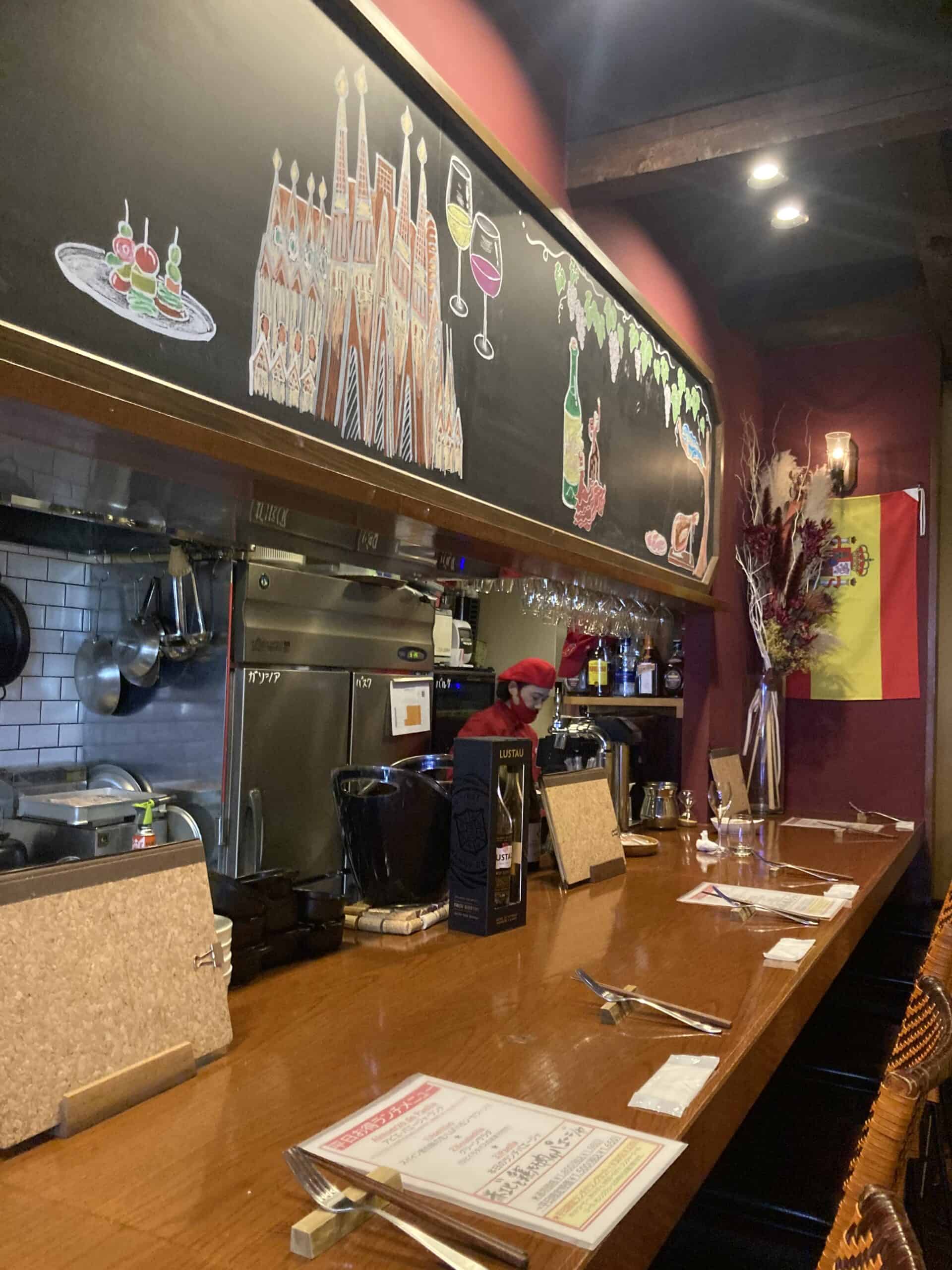 南口のスペイン料理 カウンターのみのお洒落な店内