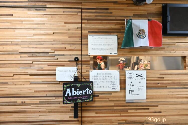 「Qro.Qro.(ケロケロ)」がオープンしているときにはメキシコの旗が掲げられる。