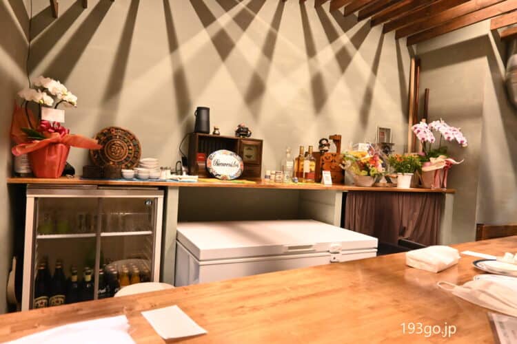 グリーンのエプロンに赤いバンダナを巻いたメキシコカラーの装いのママ(店主)が迎えてくれる。