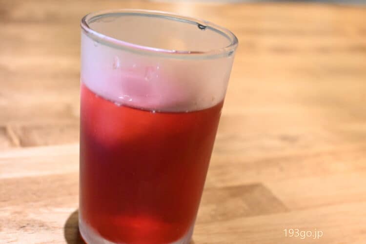 ホールのドライハイビスカスから抽出しお水と砂糖で味を調整して作っているのだそう。