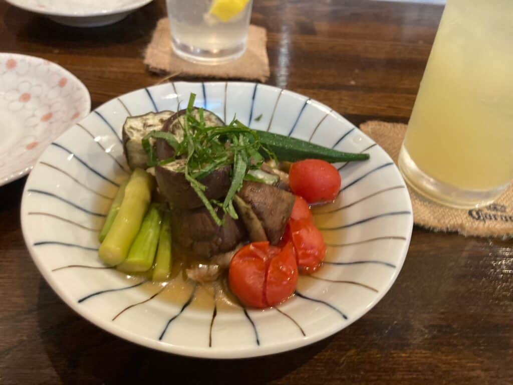 うまいも~ん…夏野菜と鶏肉の焼き煮びたし 550円