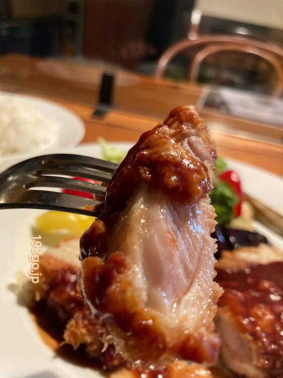 ナイフがスーッと通る柔らかいお肉のチキンカツ!厚みがありジューシー。衣が軽やかでサックサク。