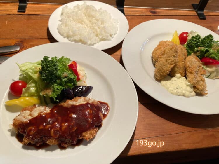 美味しい揚げ物に、お米はふっくらツヤツヤのコシヒカリで嬉しい。