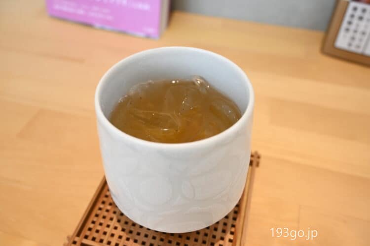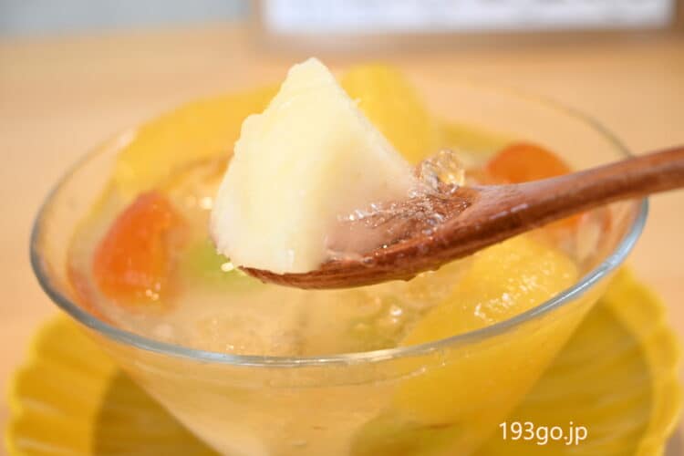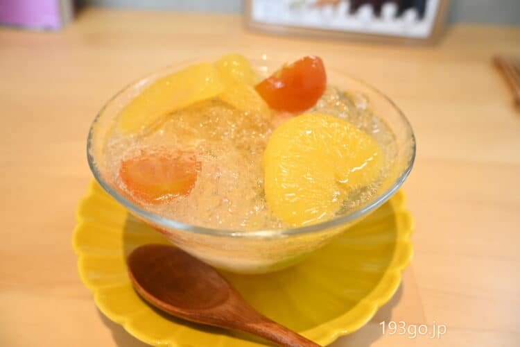 初めに、桃やキンカン、ぶどう、カンキツなどのフルーツポンチ。