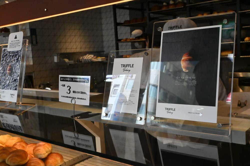 看板メニューの白トリュフ塩パンの購入は、1人3個まで。