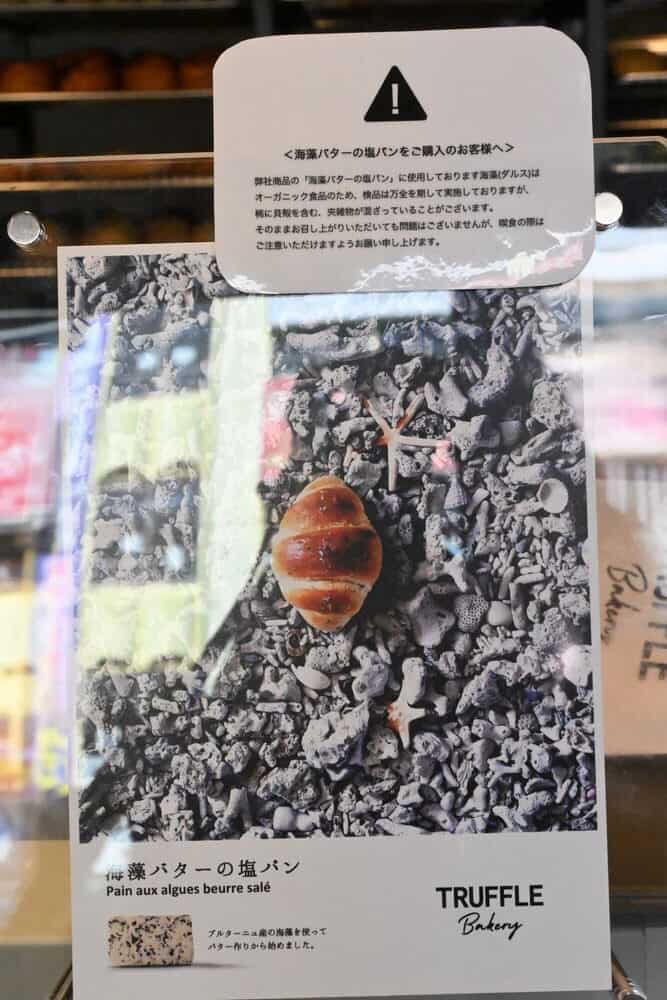 新商品の海藻バターの塩パンは、ブルターニュ産の海藻を練り込んだ自家製のバターがサンドされている。白トリュフ塩パンよりも塩気のあるパン。