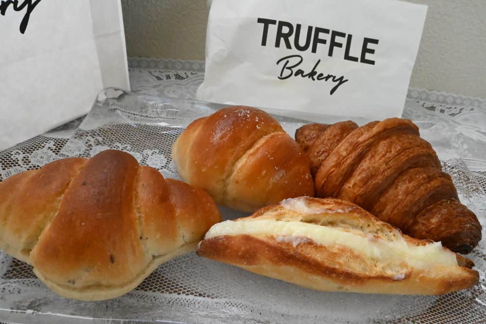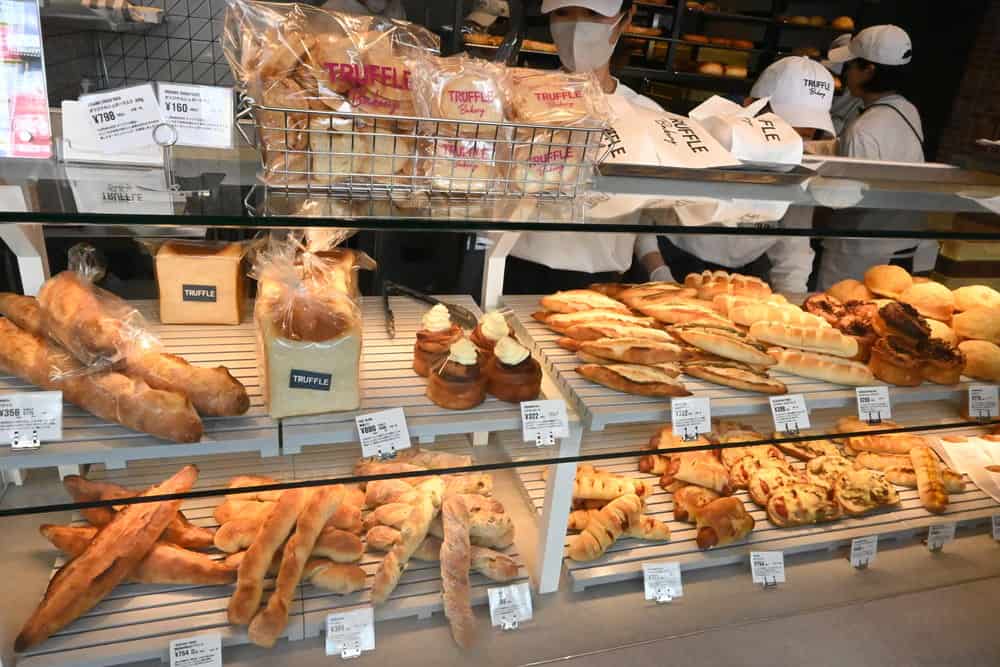 店舗限定のパンはなく、他店で販売されているパンとほぼ同様だそう。トリュフベーカリーにもあるパンが並ぶ。
