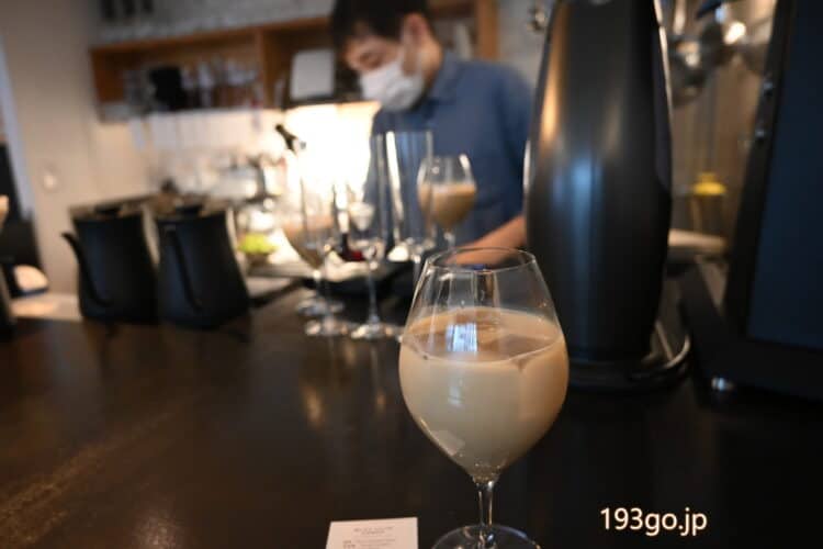 カウンターに座り、目の前で丁寧に計量しながらドリップされるコーヒーがおいしそうだったので、ドリンクはアイスのカフェラテに。