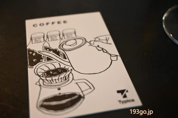 コーヒーを淹れたりパフェづくりのシーンが見られるカウンター席、2~3人掛けのテーブル4卓のスタイリッシュな店内。