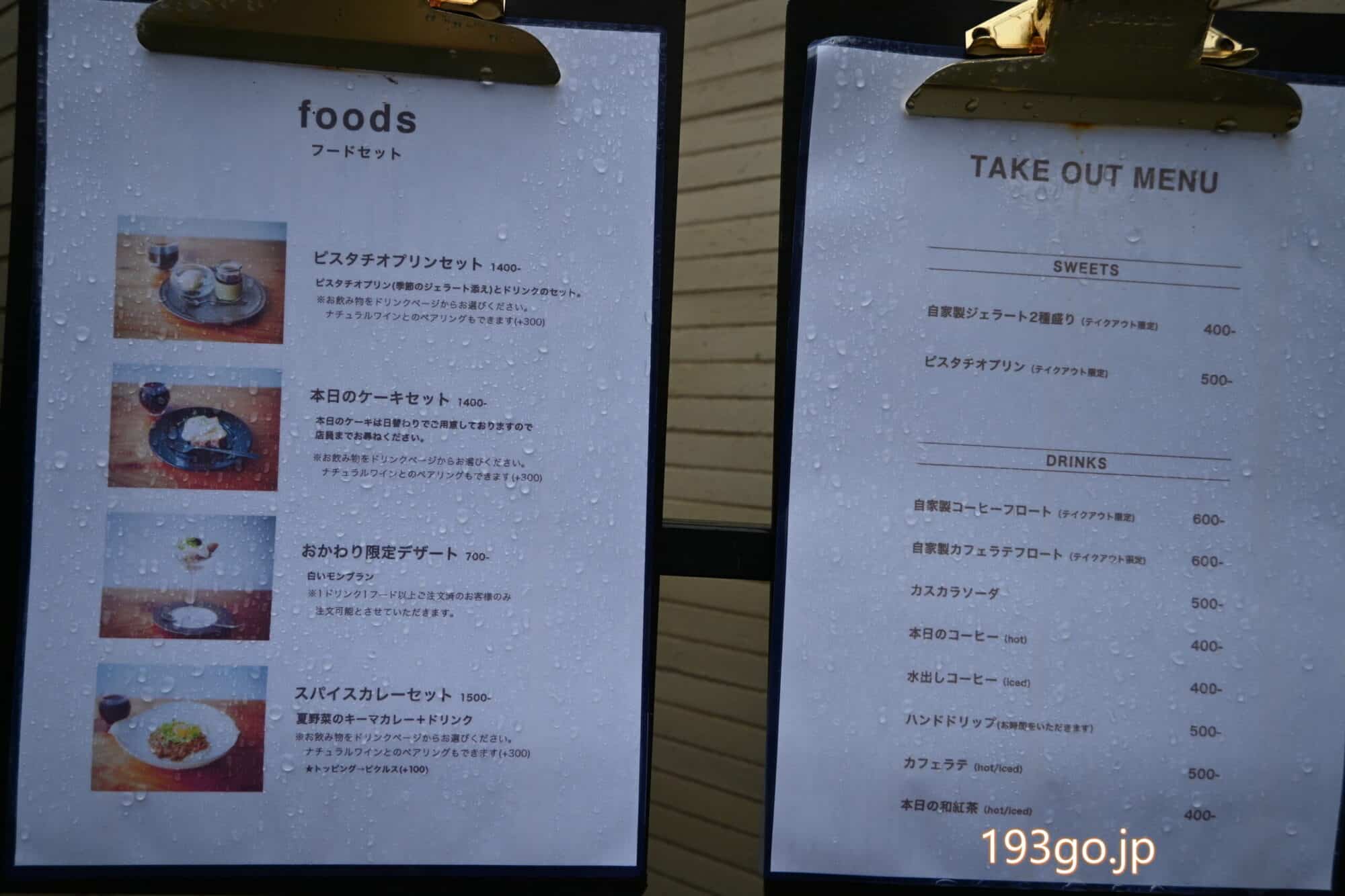 メニューはパフェセット2,500円、スパイスカレーセット1,500円など