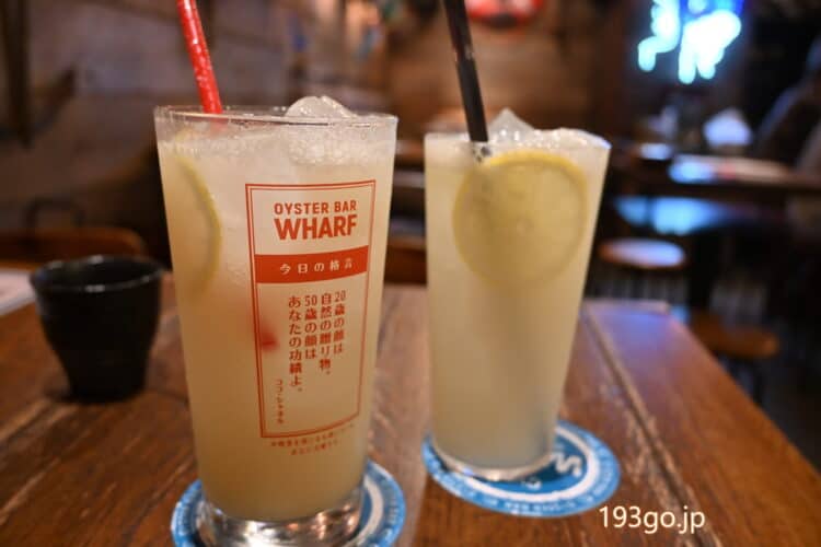 メニューは牡蠣と貝! 牡蠣に合う丸搾りレモンサワーで乾杯