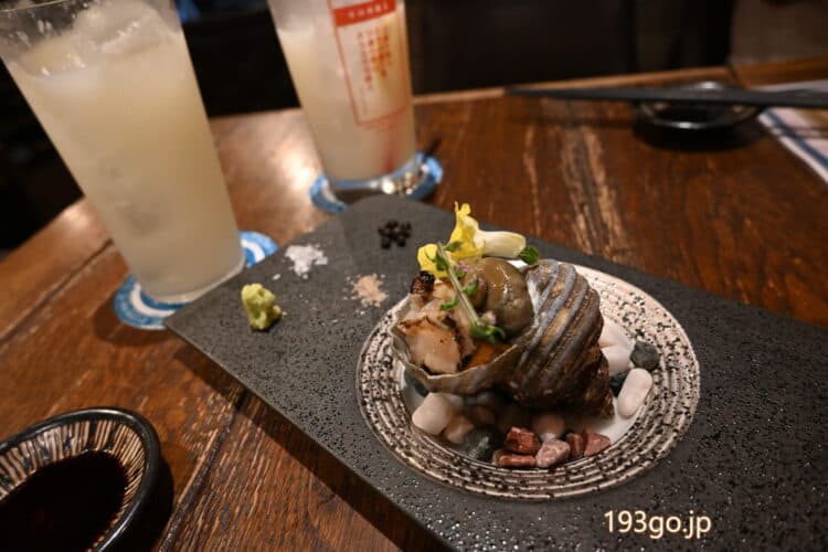 コリコリ歯ごたえのサザエお造り 燻製仕立て