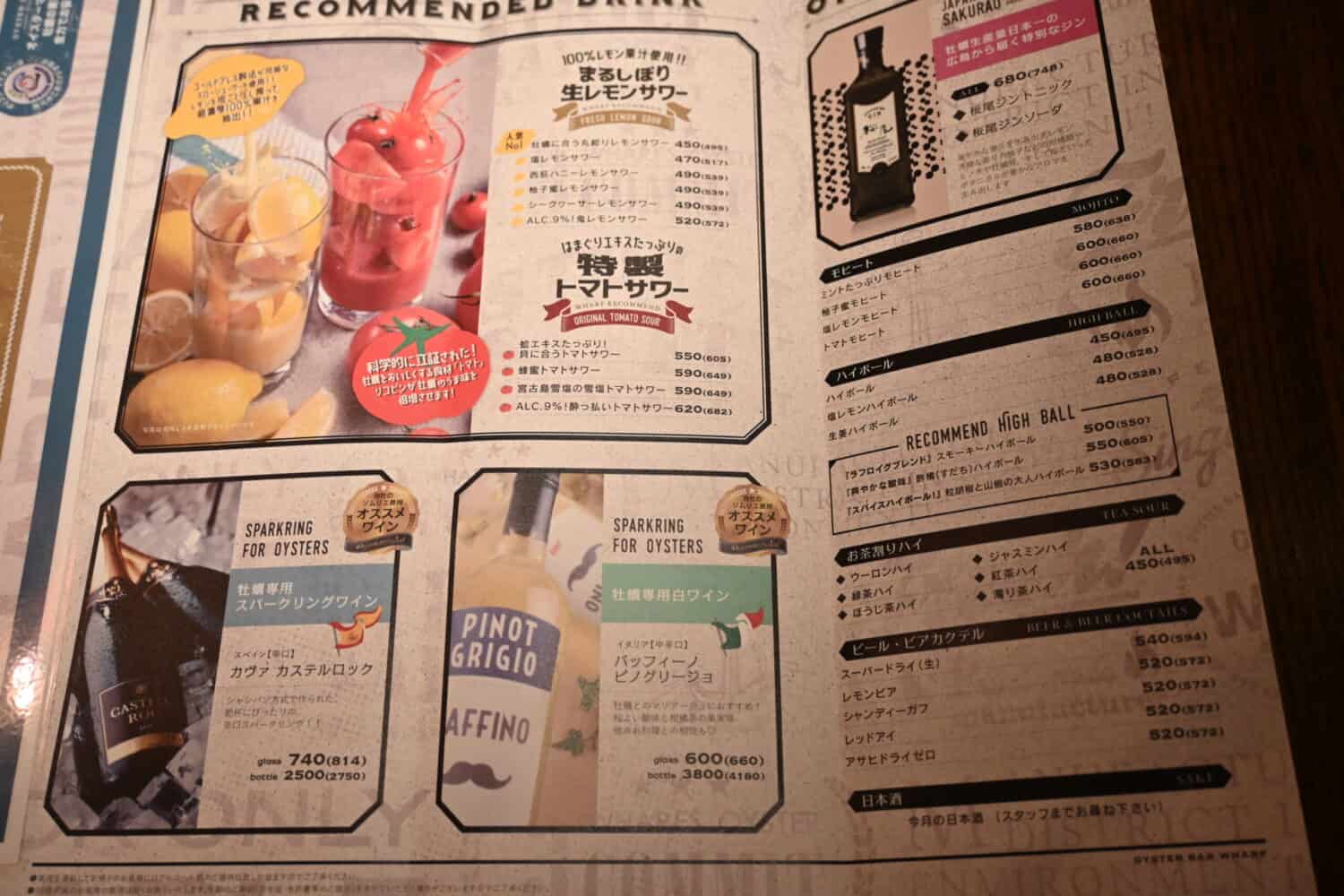 ドリンクは牡蠣と良く組み合わせるスパークリングや白ワインも。