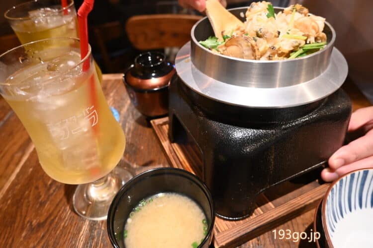 貝がふんだん!4種の貝釜めし しじみ汁でほっこり