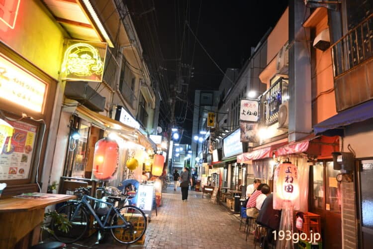 南口すぐの楽しい飲み屋街。休日はいつもお昼から賑わっている。