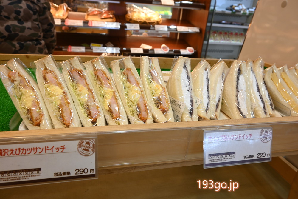 西尾抹茶のトーストや荷山モンブラン、海老カツサンド、ホイップあんサンド、西尾米のおにぎりなどの愛知ならではの商品が並ぶ。