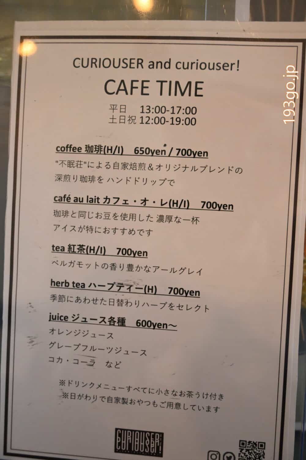 北口2分!カフェとバー&カレーの「キュリオサーアンドキュリオサー」へ