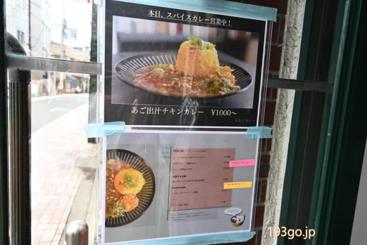 土日限定スパイスカレーのメニュー