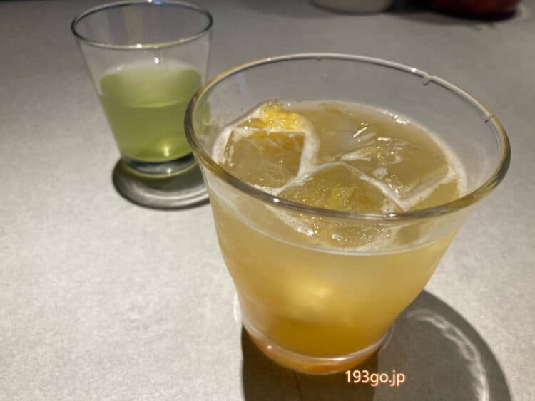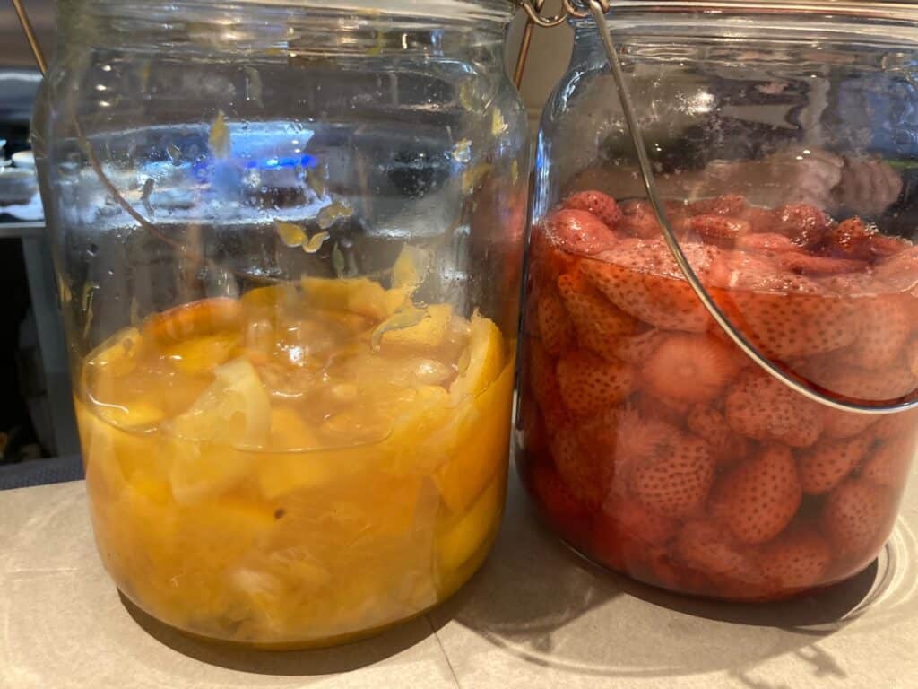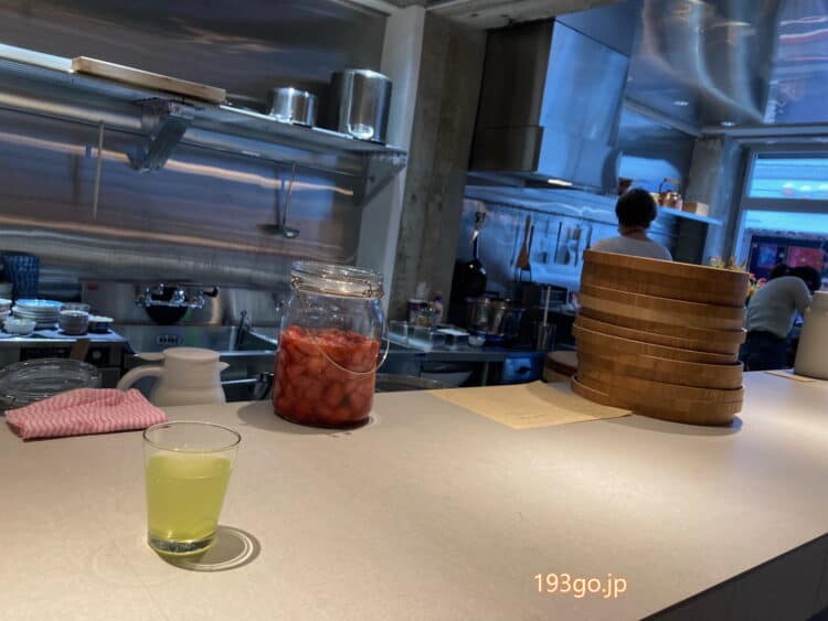 カウンターに甘夏やいちごの鮮やかなシロップ漬けが置かれ、自家製のドリンクが美味しそう。