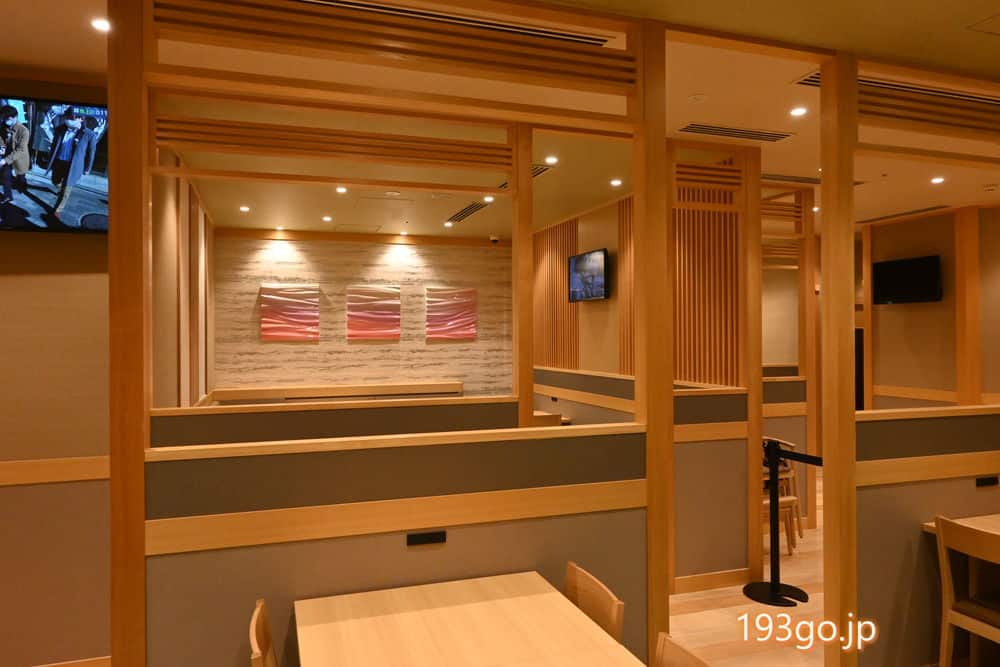 カウンター席や、数人で座れるテーブル席などスペースが分かれ、各席の近くにコンセント、テレビのモニターも数台備わる。