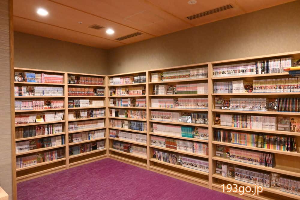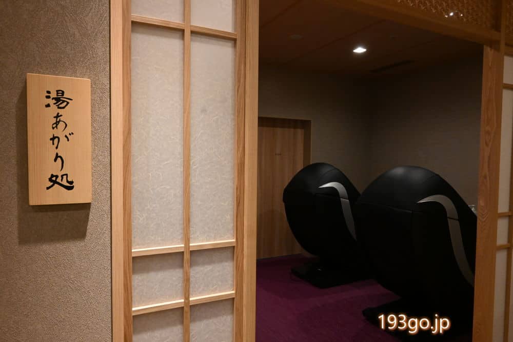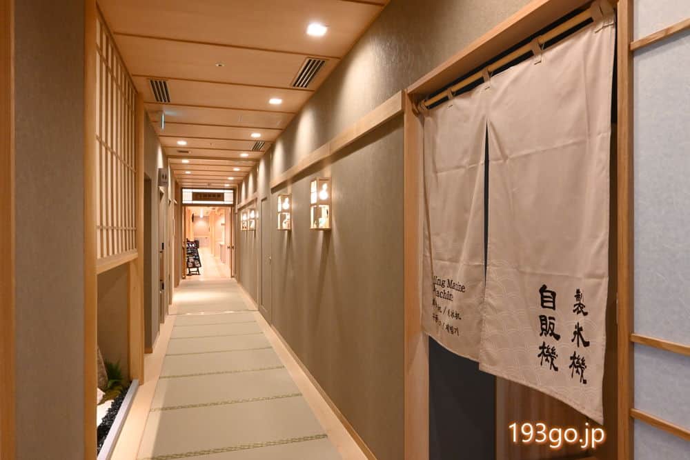 大浴場とレストランをつなぐ廊下に、湯上り処、マンガコーナー、製氷機、自販機が。