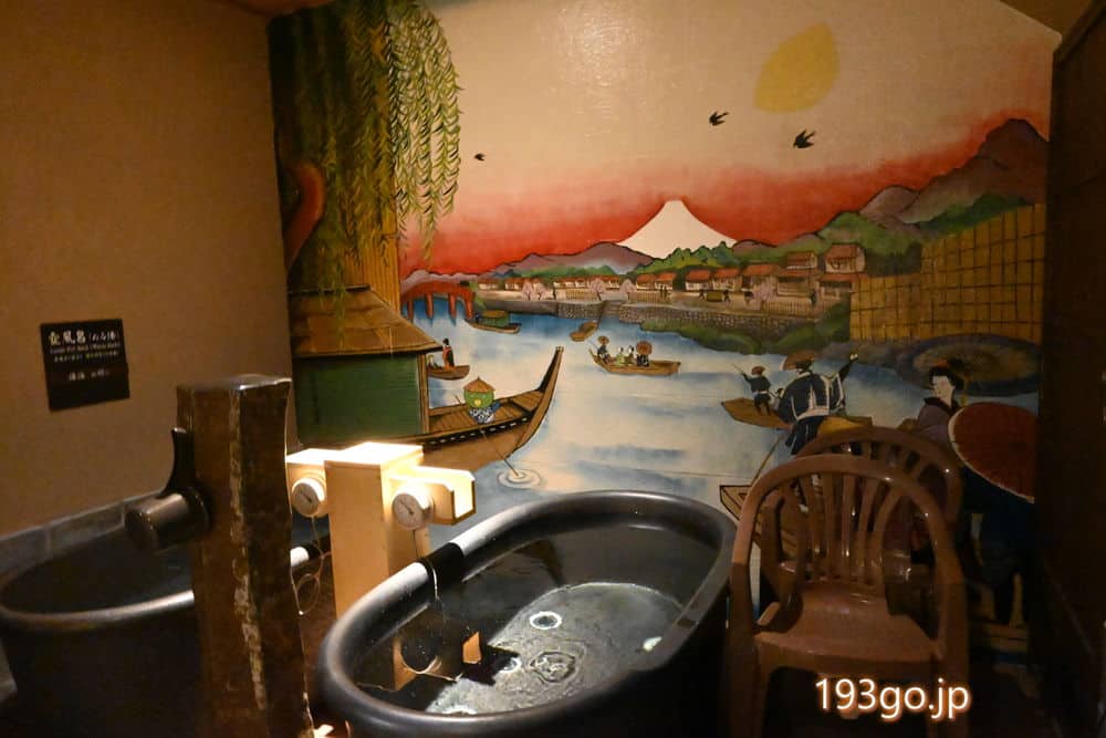 女湯と同様、内湯、外湯、サウナと水風呂が備わる。