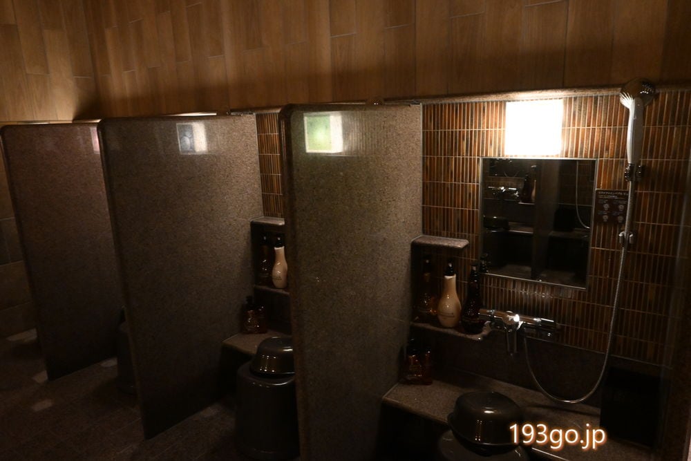 浴室に入ると暗めの照明でしっとりした雰囲気。