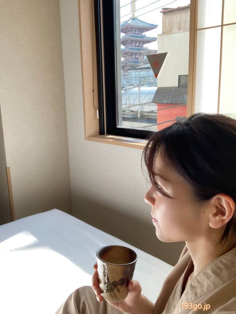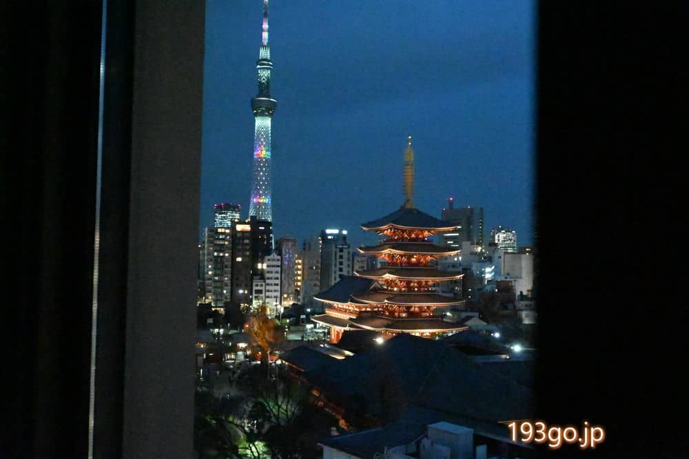 窓からは五重塔、スカイツリー。