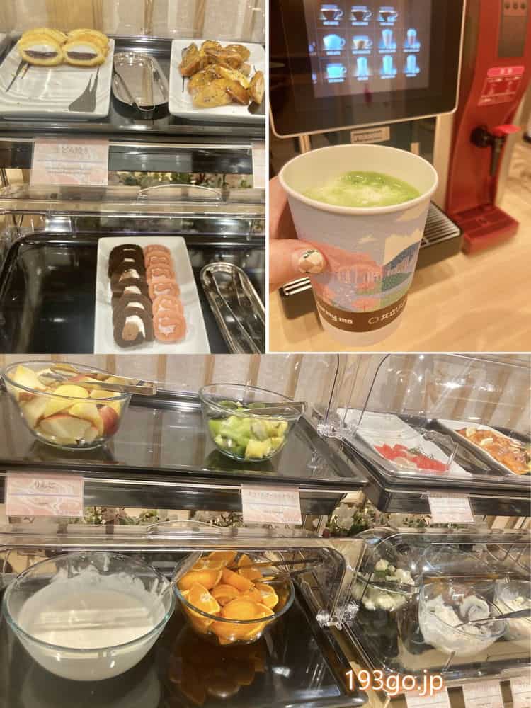 その他、フルーツ、ヨーグルト、ロールケーキ、大学芋、どら焼き、パン数種類。