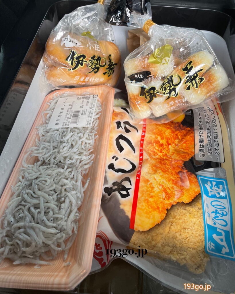 ちくわ、さつま揚げ、アジフライ、シラスなどのお土産をゲット。