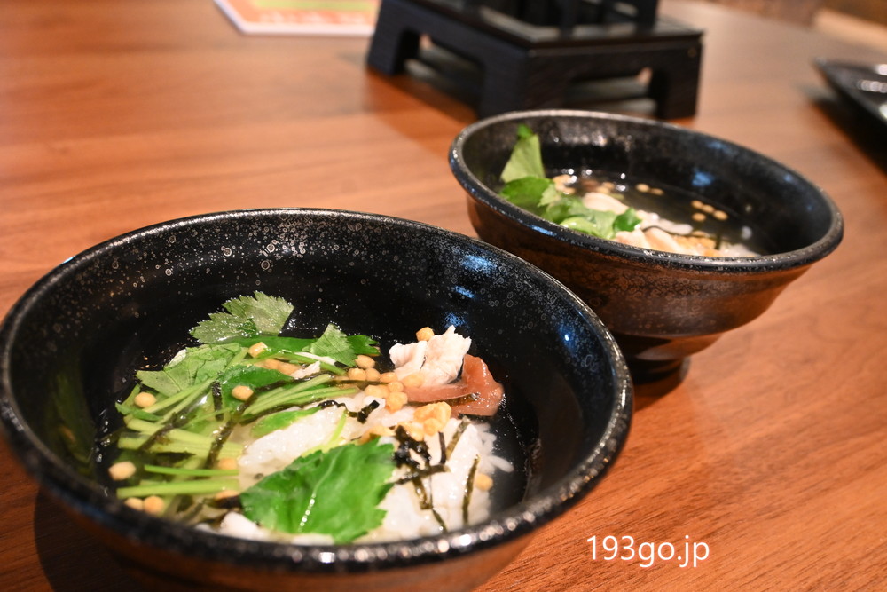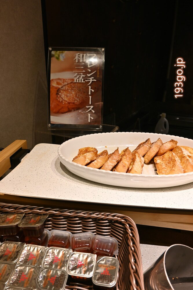 〆には鯛茶漬け、デザートはライブキッチンで焼きたての和三盆フレンチトーストを。シロップが浸みててしっとり、これも絶品。