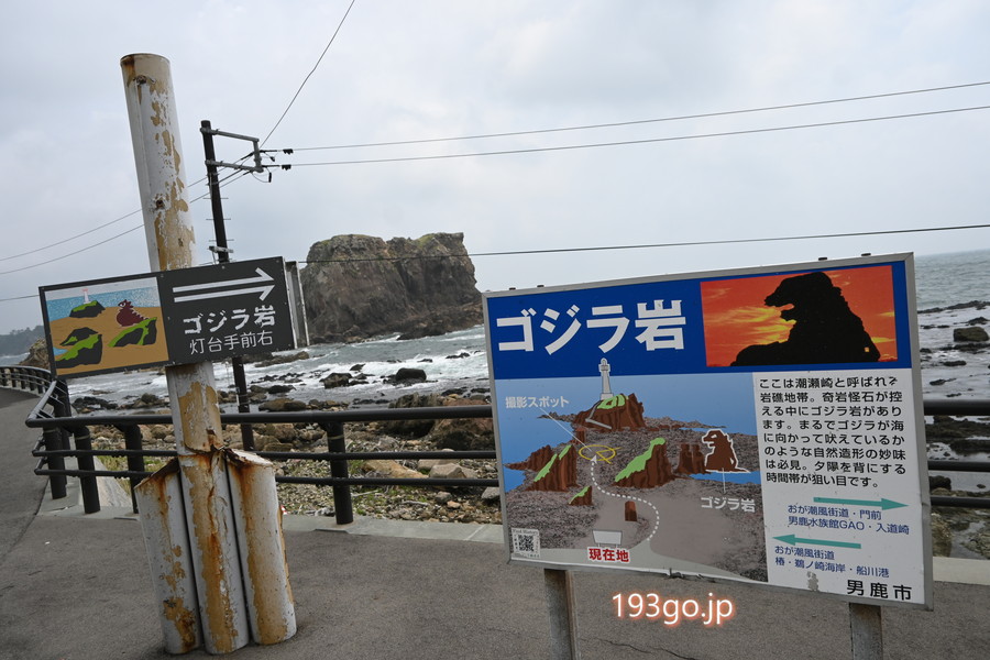 ゴジラ岩、なまはげ館などの名所を巡り、入道崎でランチを。