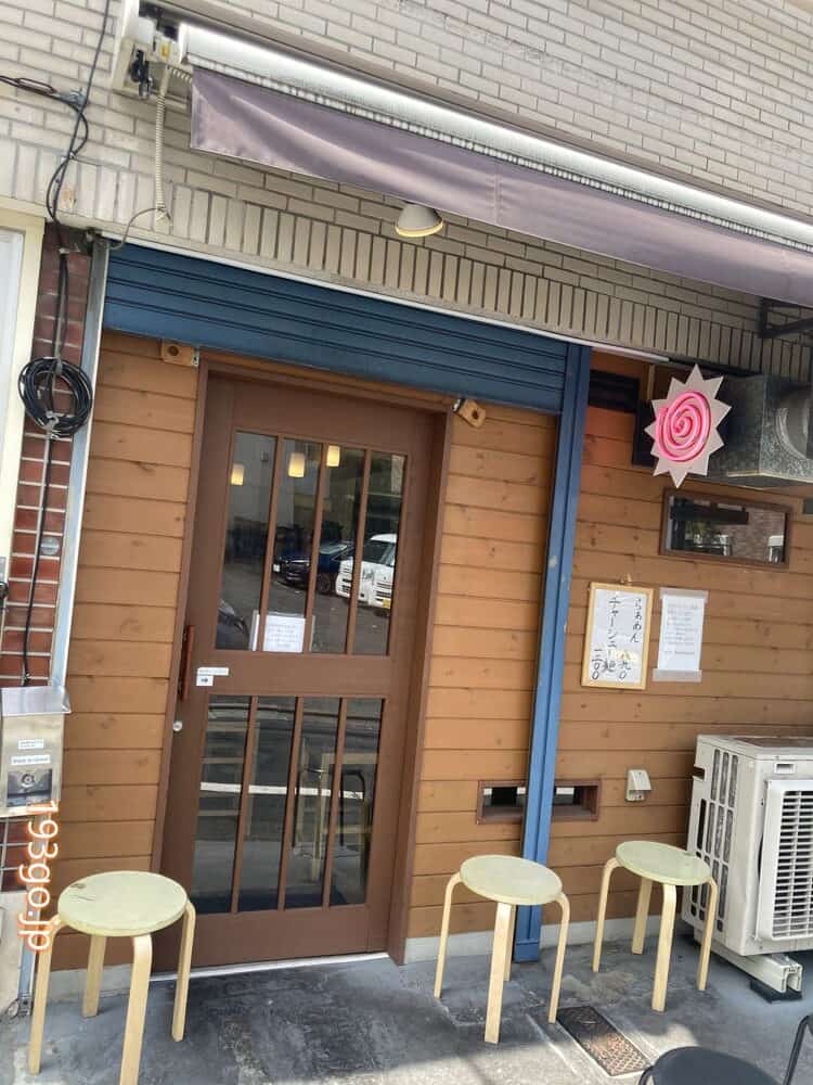 ピンク色のナルトのマークが光る、こじんまりしたお店。