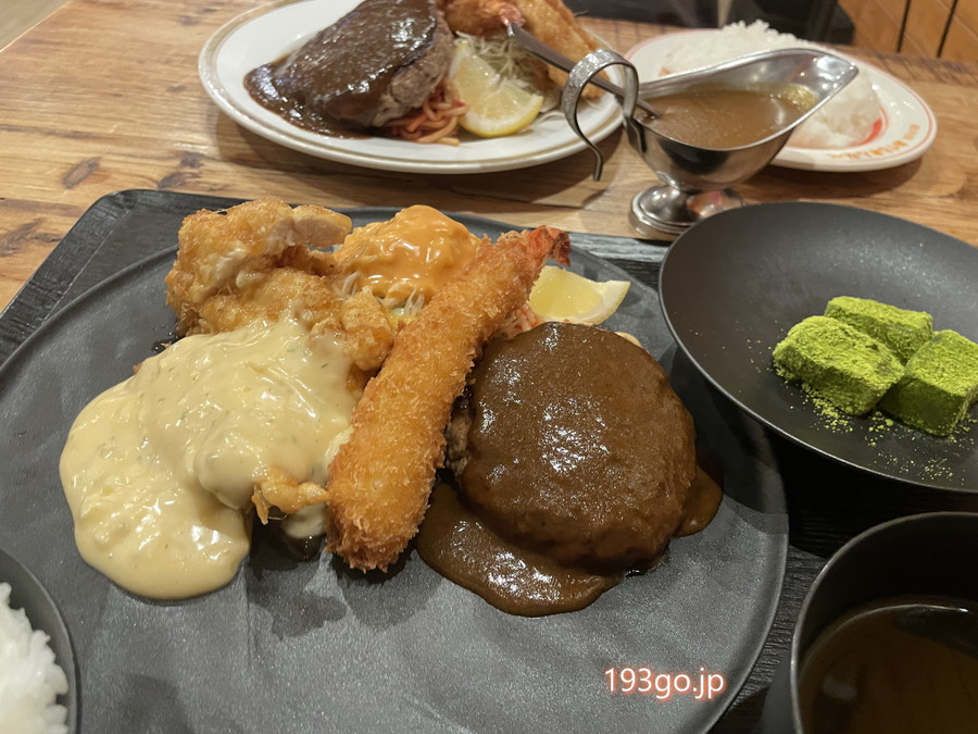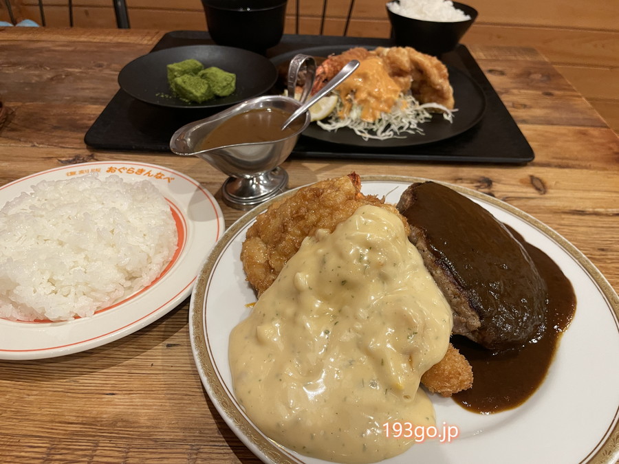 「きんなべセット」チキン南蛮、エビフライ、ハンバーグ、カレーの夢コラボ