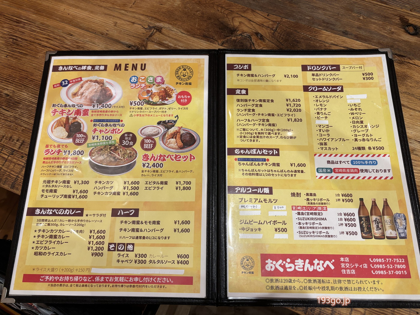 夕食は、宿から車で10分ほどの距離にある「元祖チキン南蛮 おぐらCAFE 金なべ32」へ。