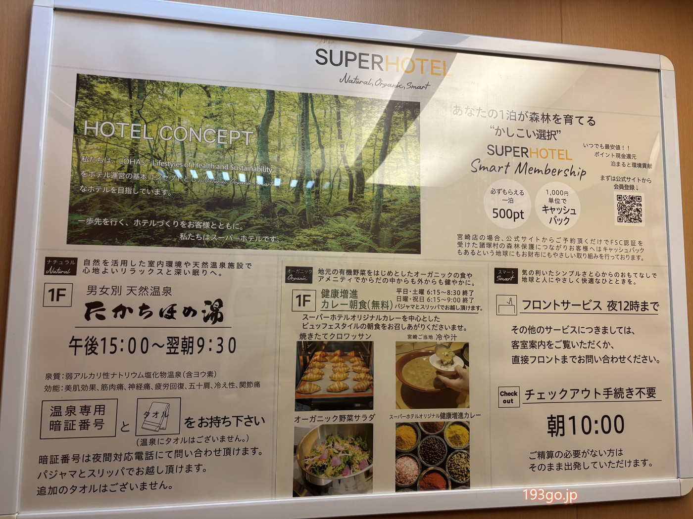 「スーパーホテル 宮崎天然温泉」にチェックイン!ウェルカムバーや大浴場付き