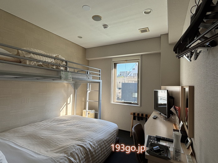 お部屋は明るく清潔感があり、二段ベッドとデスクスペースが備わり快適だった。