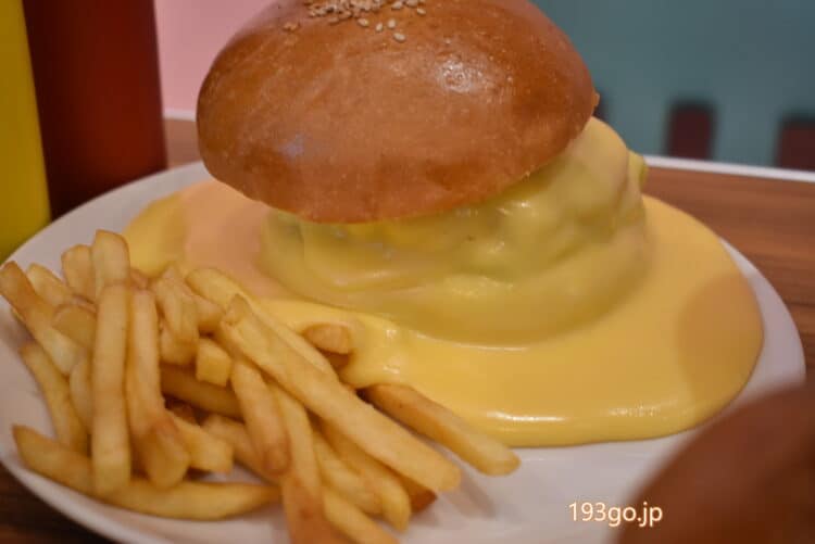 迫力あり!あふれるチーズのスーパーチーズバーガー ペッパーがアクセント