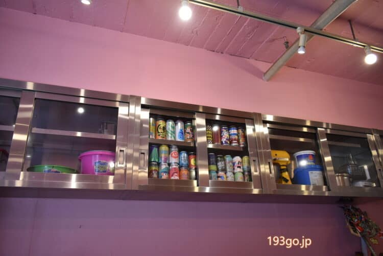 店内もピンクの壁、アメリカンでポップな雰囲気