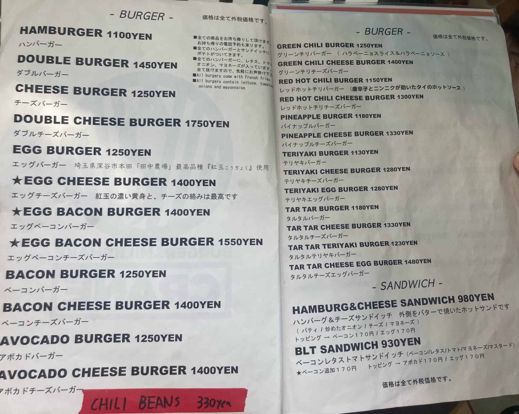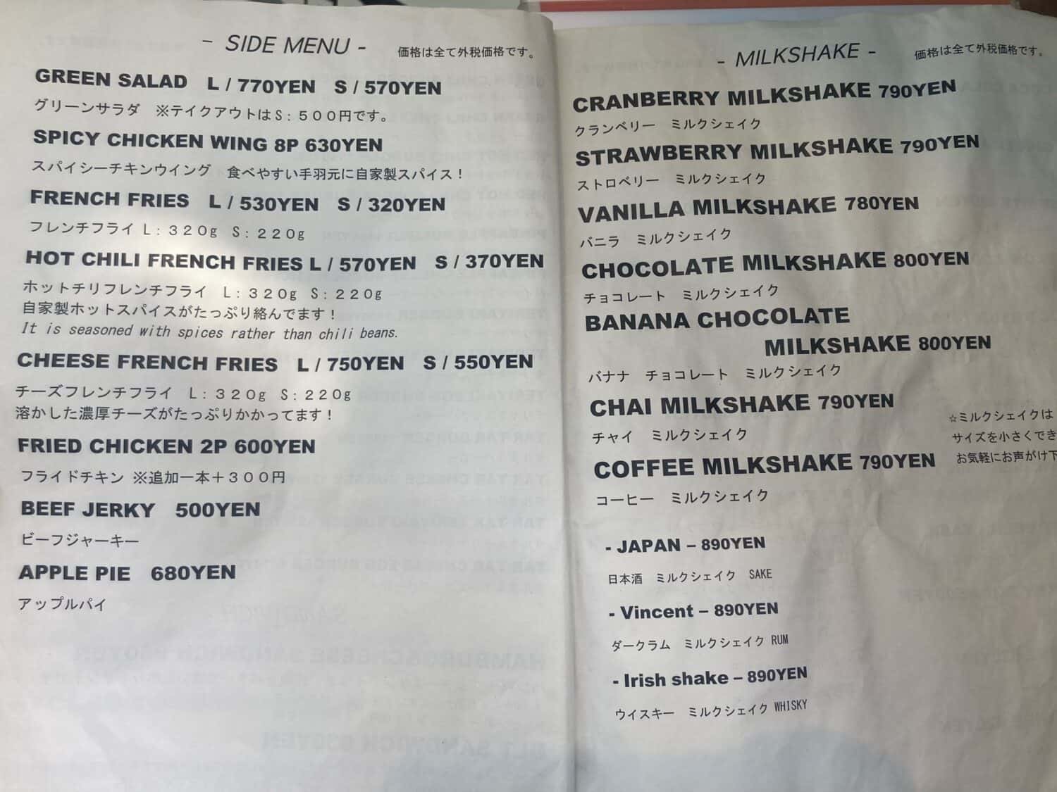 他には、エッグベーコンチーズバーガーや、アボカドチーズバーガー、パイナップルバーガー、テリヤキ、タルタルチーズバーガーなどがあり、通いたくなる店だ。