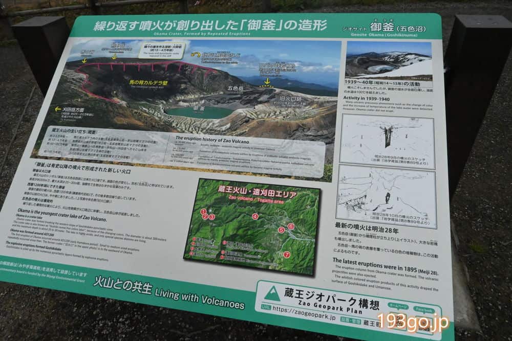 湖面はエメラルドグリーンの水をたたえ荒々しい火口壁と比して神秘的な雰囲気を持っていて冬の樹氷とともに蔵王の象徴となっている。