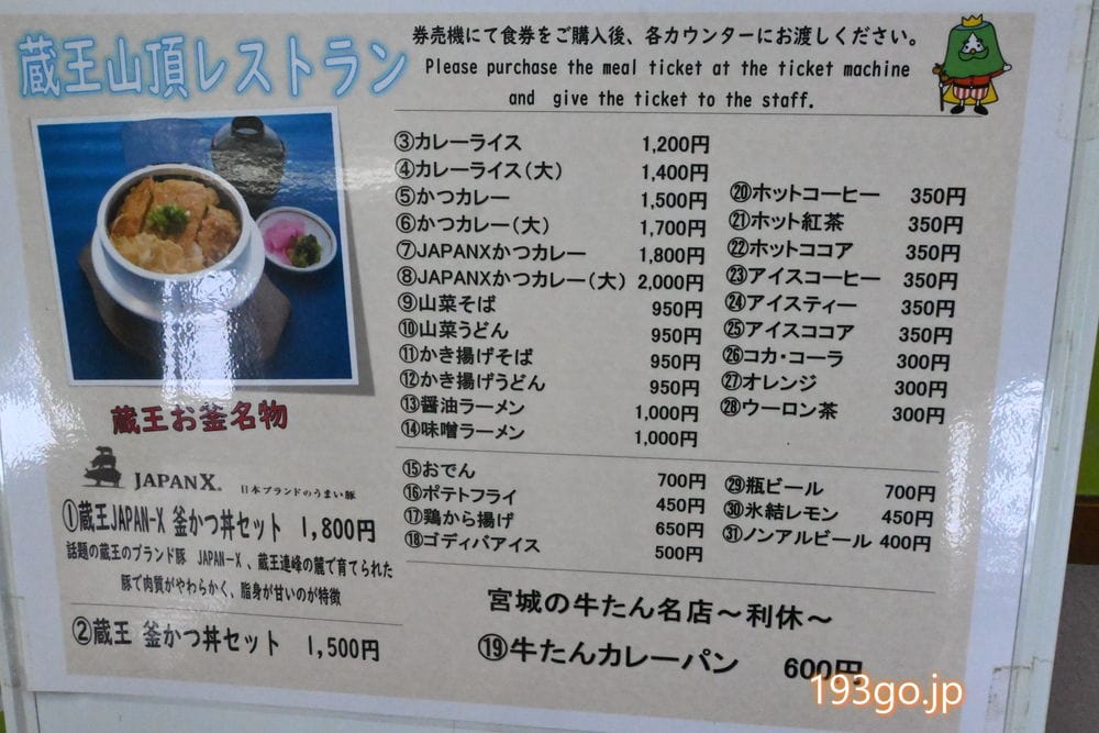 蔵王山頂レストランには、カレーライスや山菜そば、かき揚げうどん、ラーメン、ホットコーヒーなど。温かいものが揃う。