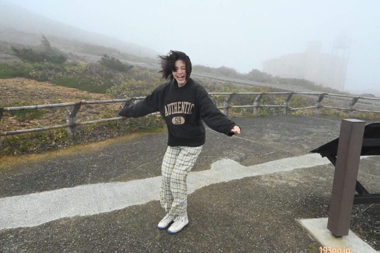 突風で飛ばされそう!果たして御釜は見られるのか?